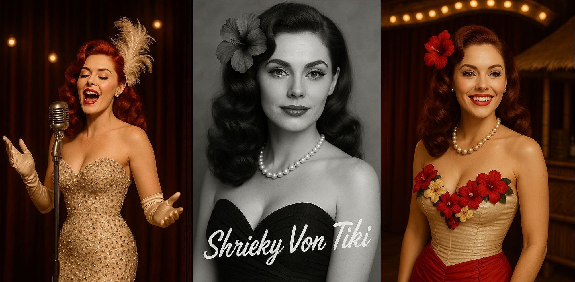 Once a Hollywood starlet and tiki lounge darling, Shrieky Von Tiki vanished one fateful night during a Halloween pre party on October 1st 1956, after drinking The Final Scream.